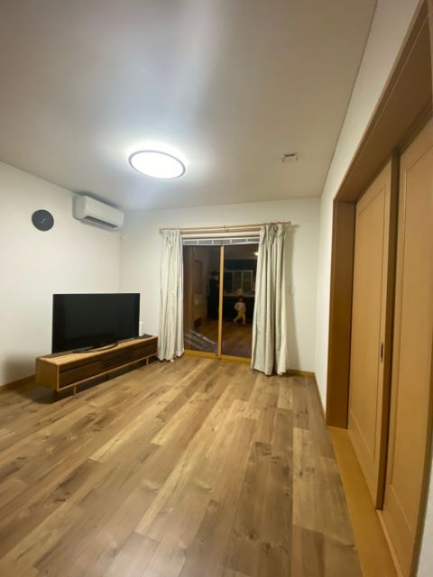 今回は一階リビングとホール部分の床の重ね貼り、リビングドア交換、勝手口外と玄関の照明交換、物干しの設置と、部分的なリフォームを施工していただきました。はじめてのリフォームで、見積もりの段階からさまざまな不安がありましたが、ひとつひとつ丁寧親切に対応していただき、施工完了まで安心して迎えることができました。 |