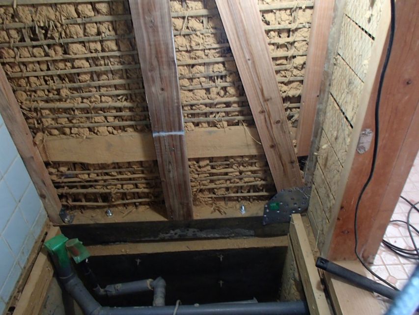 ☆手洗いの壁を耐震壁として、補強工事をした例です。