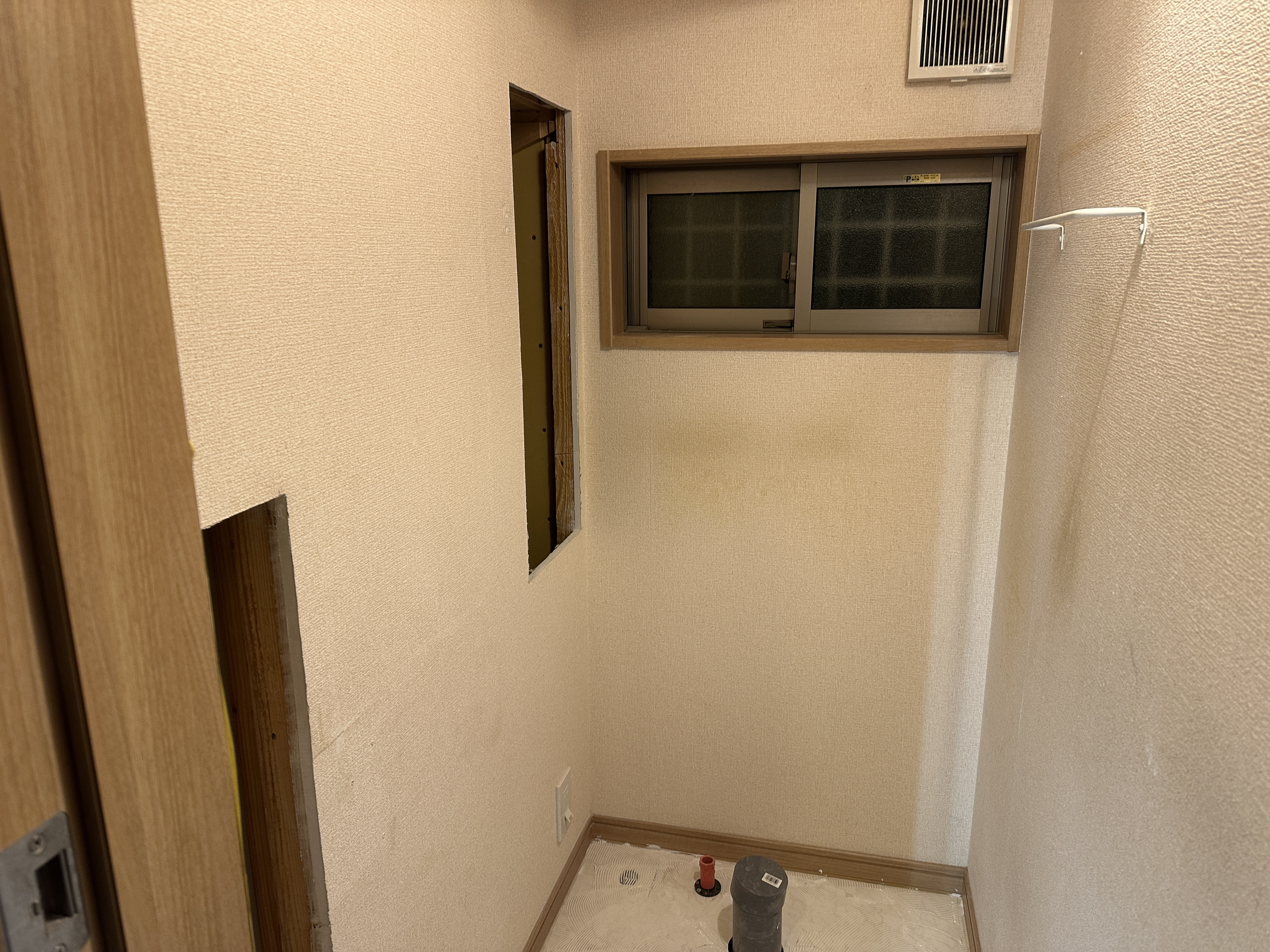 さらに、お客様から収納スペースを増やしたいというご要望をいただき、収納キャビネットを設置しました。こちらも埋込型を採用することで、圧迫感を抑えつつ、必要な収納容量をしっかり確保しています。トイレ空間が整然とした印象になり、実用性と美しさを両立させた仕上がりとなりました。