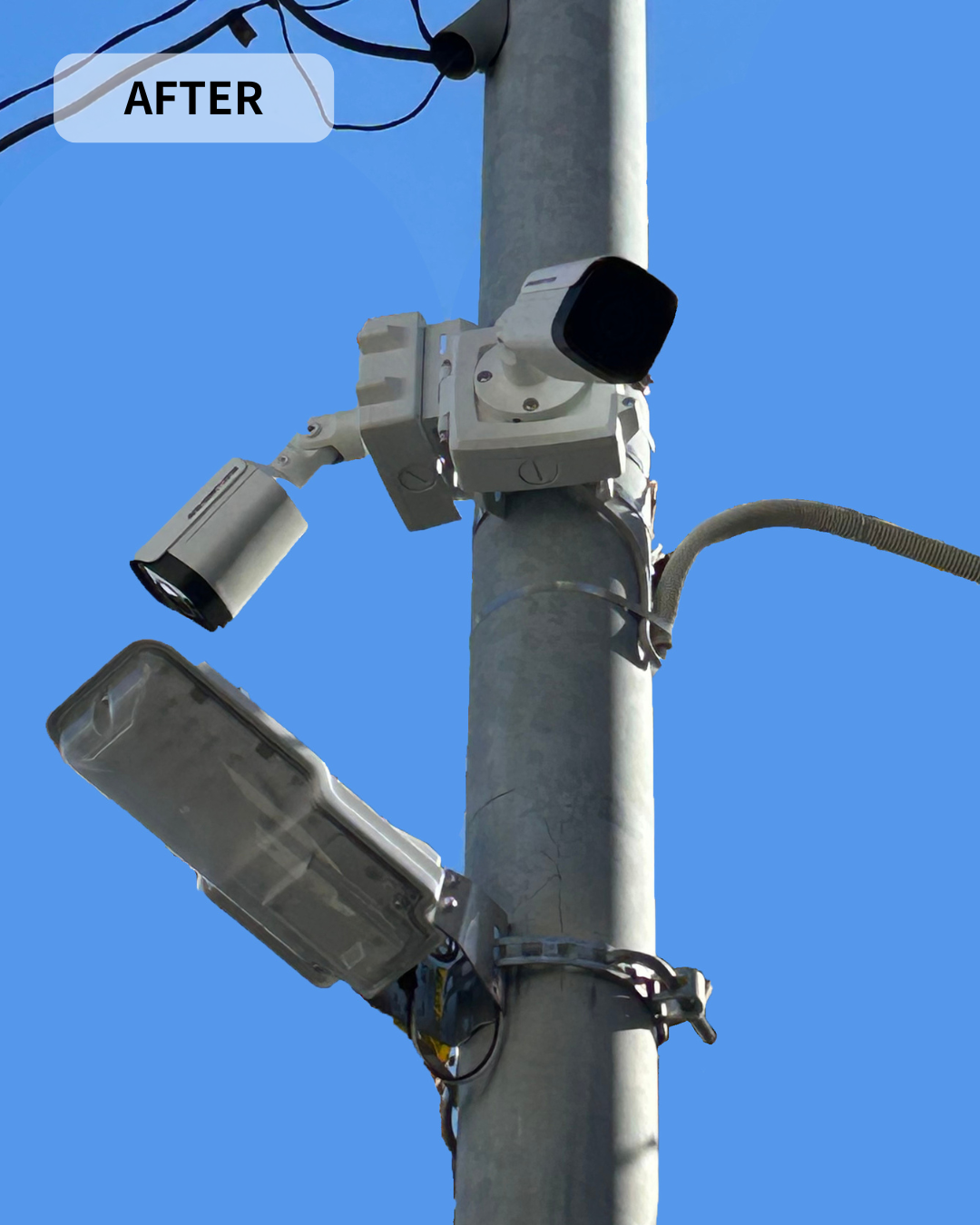 敷地内の電線引込ポールに防犯カメラとセンサーライトを設置しました。