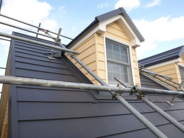 ・スレート(コロニアル)屋根から金属屋根への葺き替え、屋根カバー工法