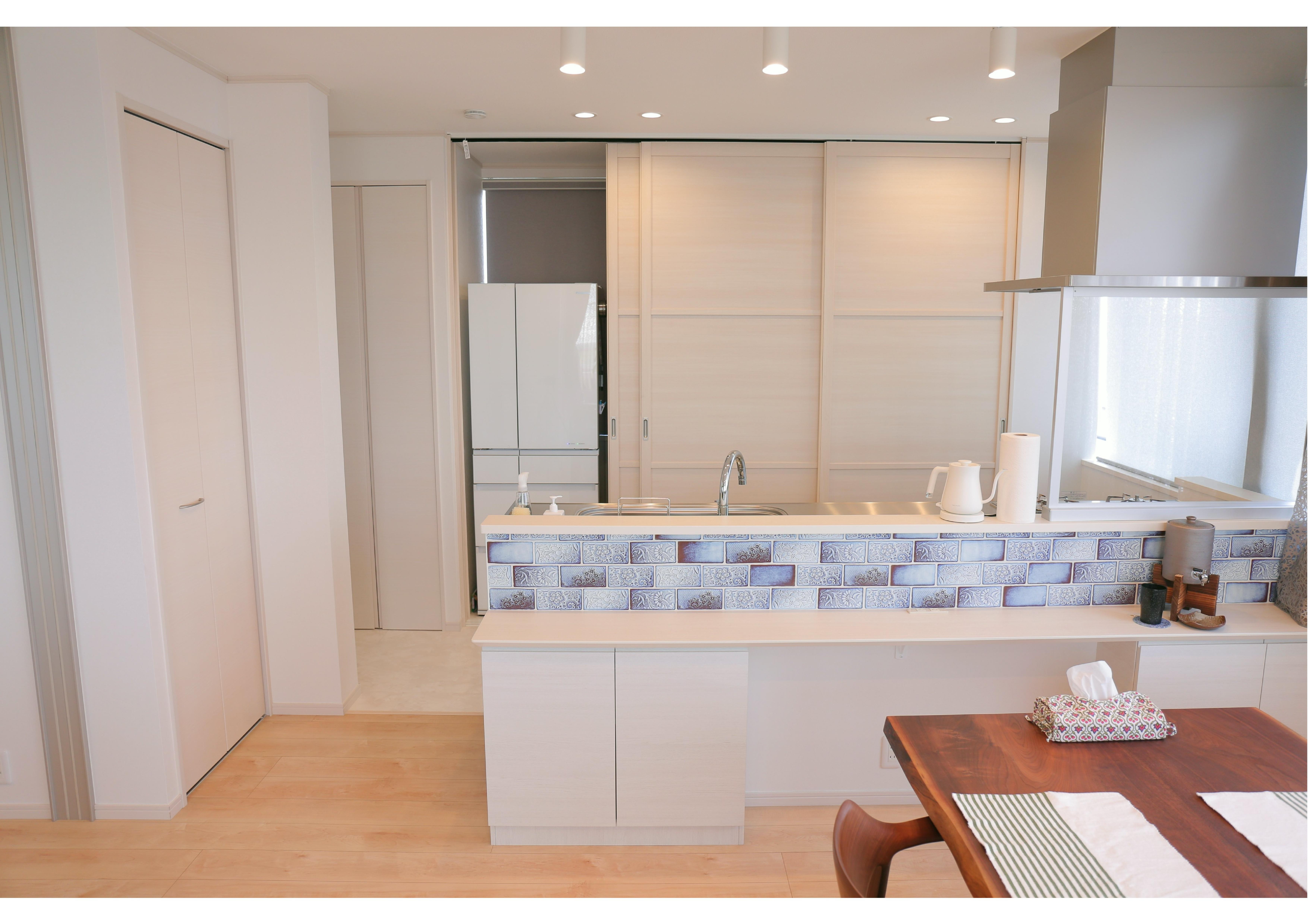 思い入れのある食器棚やタンスはサイズを測って、配置を計画し、引き戸ですっきり。収納は使うものと使う場所に合わせて、適所に配置しました。デザイン性、家事効率のよい動線・収納など、大満足いただけました。