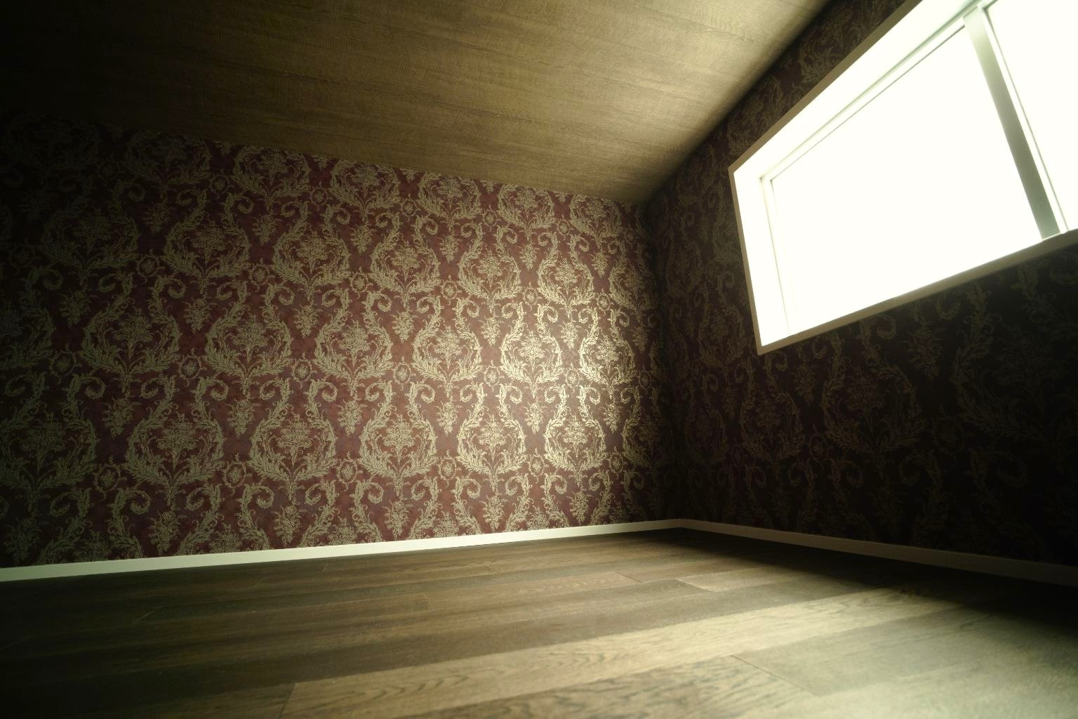 LDKのロフトです。 下から見える面にアクセントクロスが貼られており、こだわりを感じます。