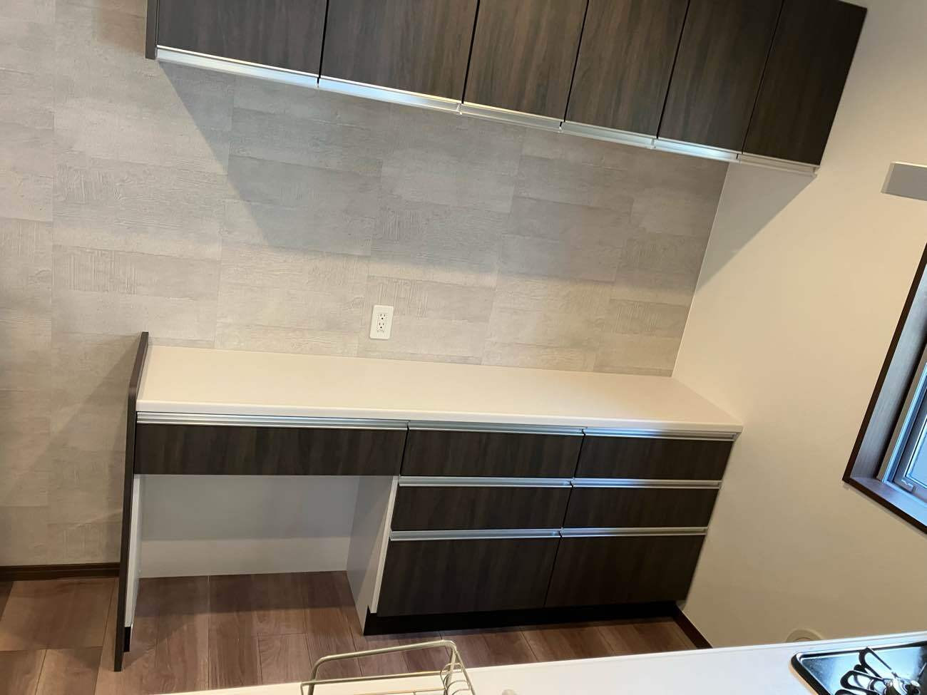 新築戸建てのキッチンに、カップボードの設置をご依頼いただきました。