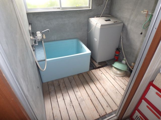 (浴室・改修前)全面コンクリートで冬場はとても寒い浴室でした。置き型浴槽でゆっくりくつろげていませんでした。